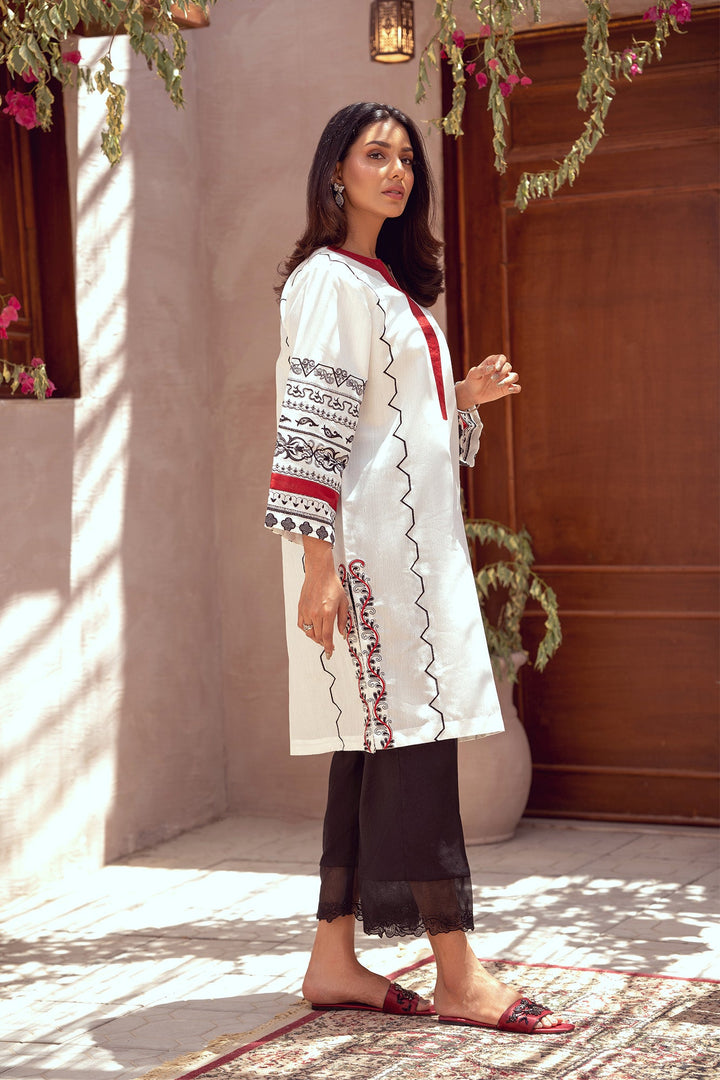 Meet Nimr, a timeless staple to add to your wardrobe. Our White Kurta features single satin embroidery on the sleeves...