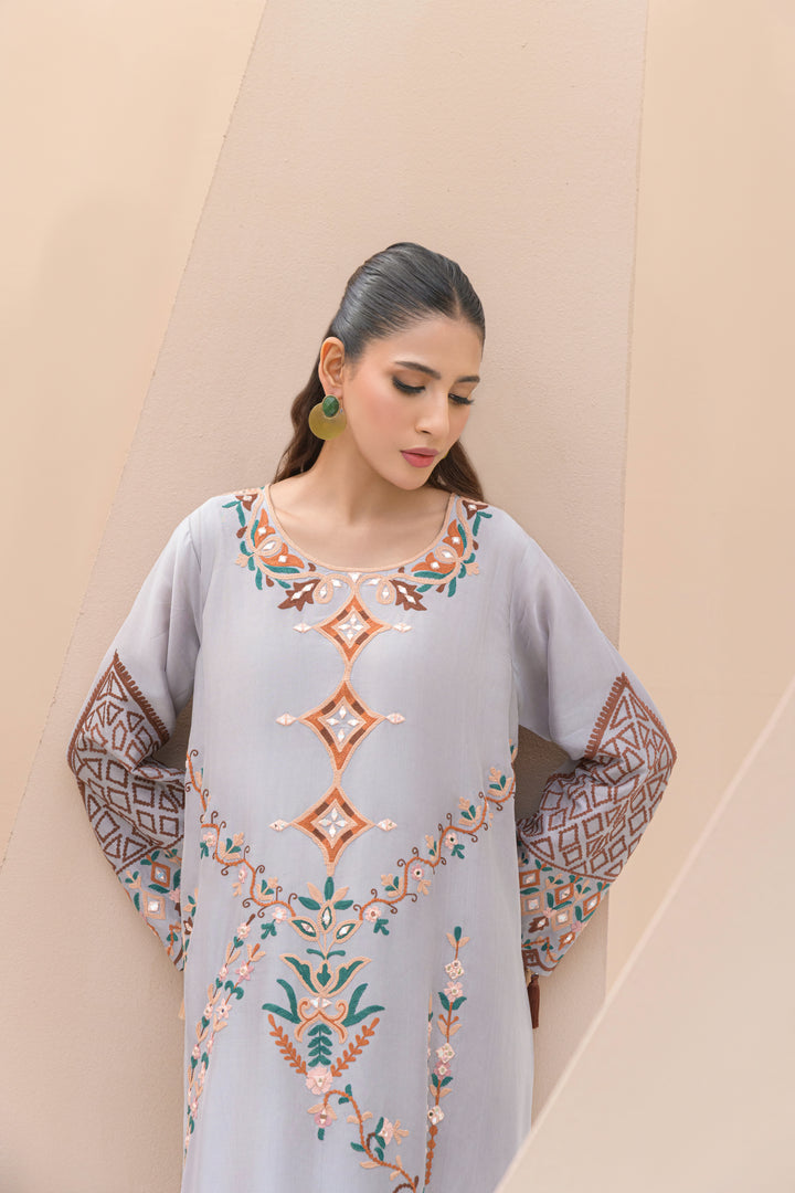 Kaftan: Colorful ari embroidery, mirror work, sleeve tassels