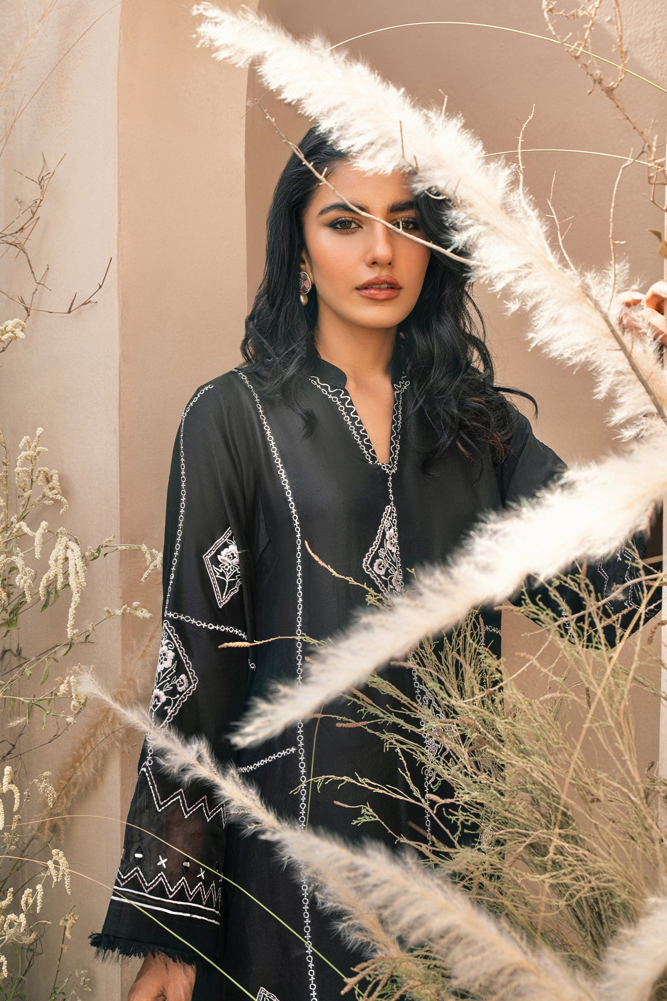 Meet "Zebaish" from Rang - e - Khizan, a masterpiece in Raven Black. The fusion of Shisha silk and organza, adorned with meticulous embroidery, showcases an exquisite balance of tradition and modernity. Let Zebaish's allure captivate you and redefine your style with sophistication.