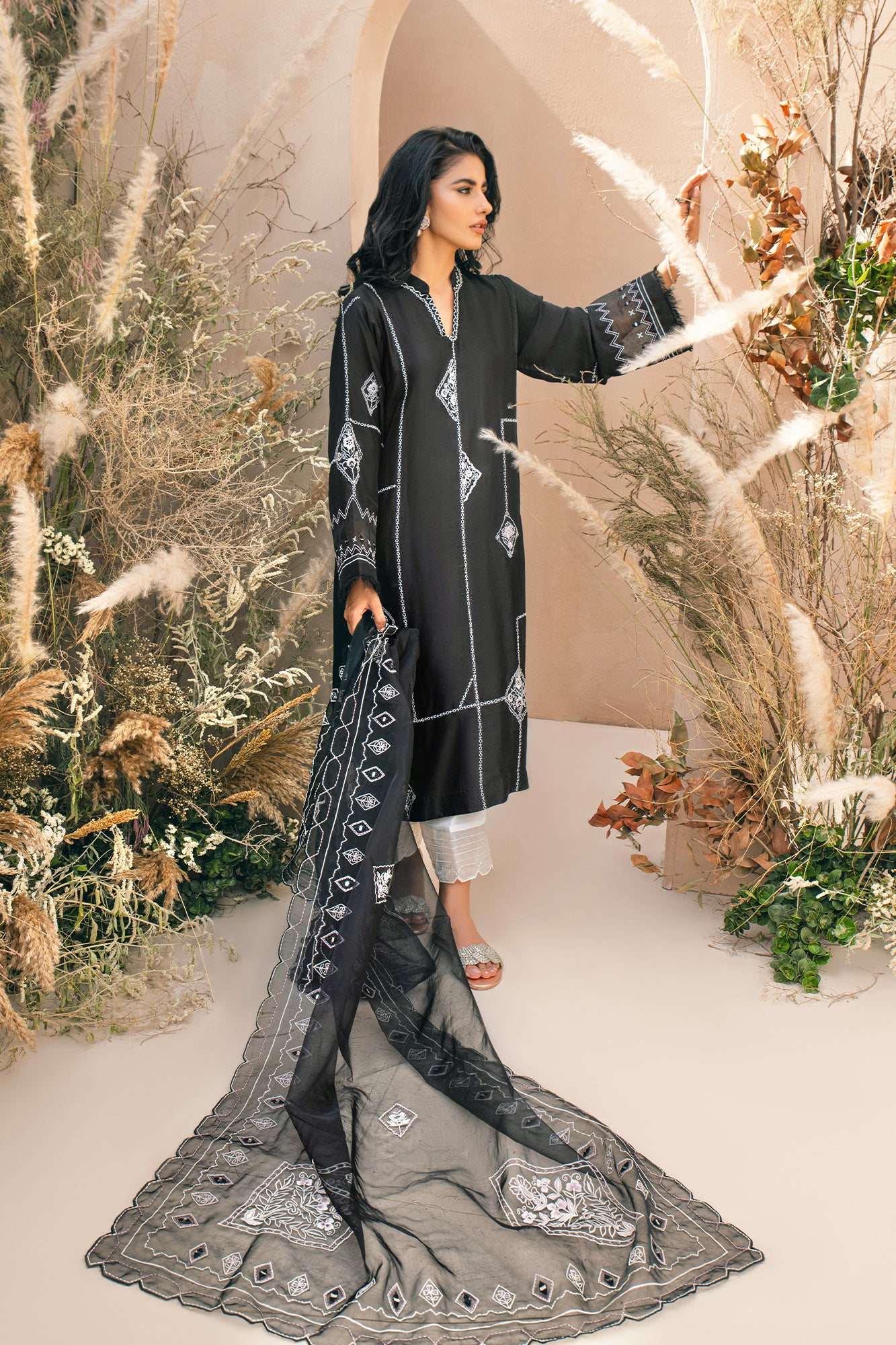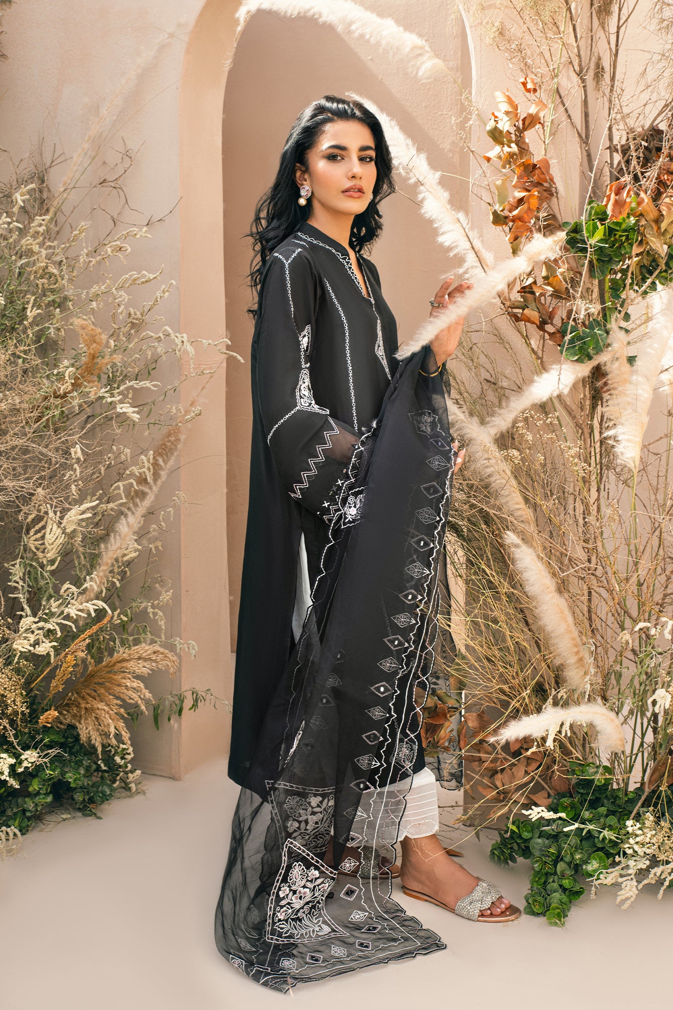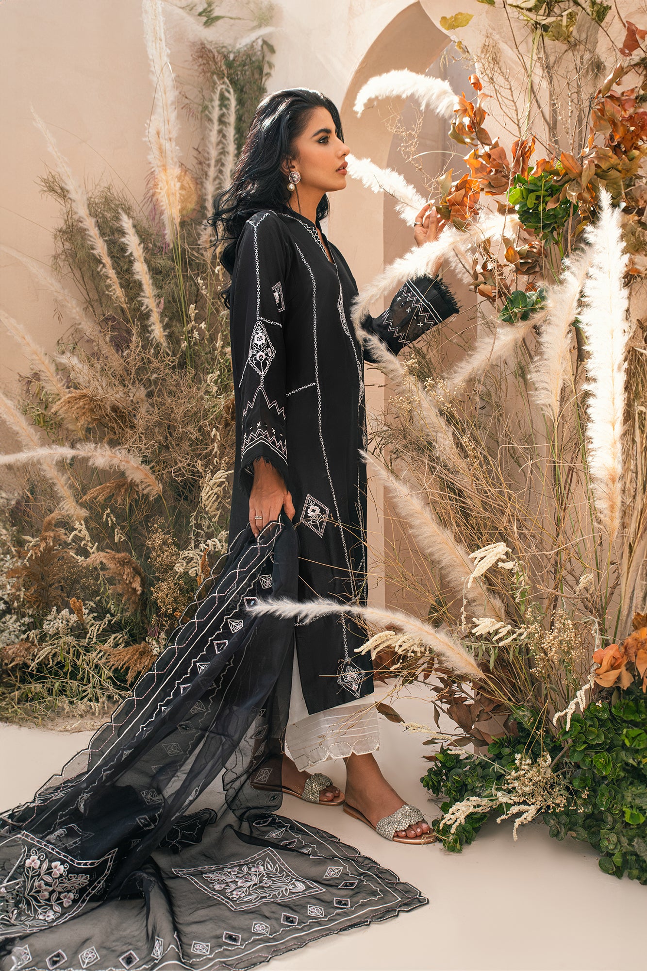 Meet "Zebaish" from Rang - e - Khizan, a masterpiece in Raven Black. The fusion of Shisha silk and organza, adorned with meticulous embroidery, showcases an exquisite balance of tradition and modernity. Let Zebaish's allure captivate you and redefine your style with sophistication.